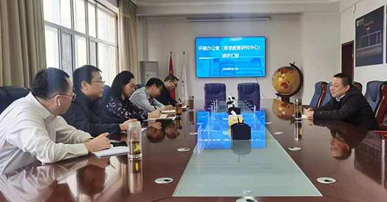 3月12日下午,学校党委委员、副校长薛明明到评建办公室(医学教育研究中心)开展调研。党政办公室副主任王君、教务处副处长高尚、实践教学基地管理处副处长胡宾、医学模拟中心副主任董重阳陪同调研。
